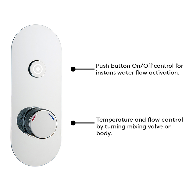 - Push button On/Off control for instant water flow activation