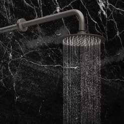 Bring your bathroom to life with the chic brushed gunmetal grey finish of the Arezzo Round Thermostatic Shower Pack. This striking minimalist design features a rainfall shower head for wide body coverage and a spa like experience. You can also hide messy pipework in the wall thanks to the concealed shower valve, which allows you to use the fixed head or bath spout either separately or simultaneously. Round valves offer smooth operation and the thermostatic function maintains a consistent temperature for peace of mind while you’re washing.
