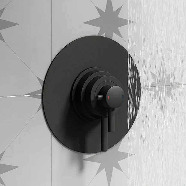 The minimalist Arezzo matt black thermostatic shower valve with round backplate offers thermostatic showering with two easy to operate controls, one operates flow control whilst the other allows temperature selection. To be used with a fixed head or slide rail kit, this valve has the added safety benefit of a built in anti-scald device should the cold water supply fail. The Arezzo dual concealed thermostatic shower valve adds a touch of sophistication and style in any bathroom.
