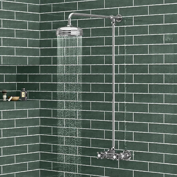 Chatsworth Traditional Thermostatic Exposed Top Outlet Shower Bar Valve with Rigid Riser & Fixed Head