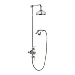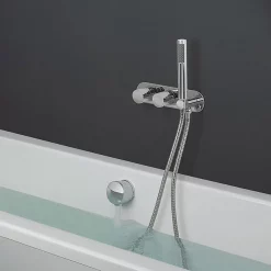 This Central Wall Mounted Thermostatic Shower Valve with Handset is fully integrated with two outlet valves and can be smartly operated for bath filling with a handset, or double showering with an overhead shower and handset.