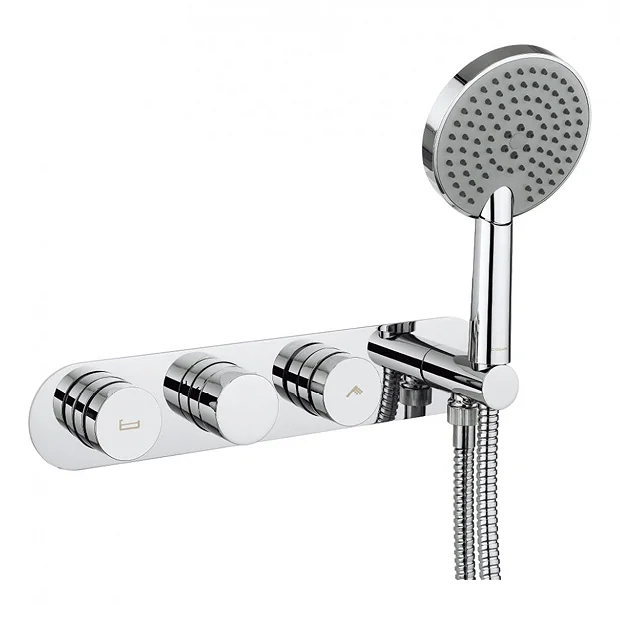 The chic looking Dial Central Bath Valve with 3 Mode Handset features a brass body which has been engineered for maximum flow rate, the valve has 11 separate flow positions for complete showering flexibility whilst the built in thermostatic valve gives precise control of the temperature.