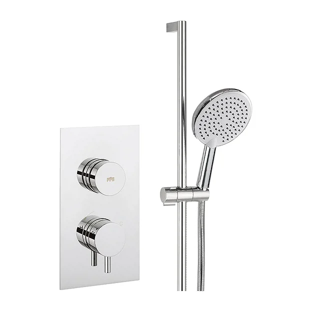 The chic looking Dial Kai Lever 1 Control Shower Valve with Pier Shower Kit features a brass body which has been engineered for maximum flow rate, the valve has 11 separate flow positions for complete showering flexibility whilst the built in thermostatic valve gives precise control of the temperature. This shower kit comprises of a Pier 600mm shower rail, single mode handset, hose and wall outlet.
