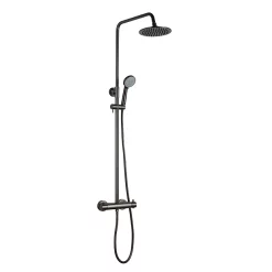 The Solex range from JTP features stylish cross head handles and a sleek matt black finish. This thermostatic concealed shower valve controls two outlets such as a fixed head/slide rail kit, fixed head/body jets or slide rail kit/body jets. The valve has separate controls for flow and temperature that makes it easy to use while the thermostatic valve ensures safe showering and constant temperature.
