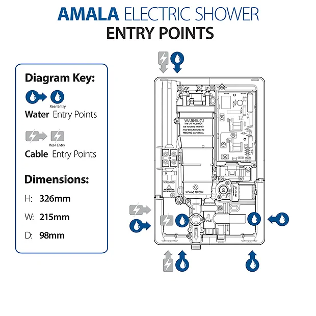 Whether you’re out to add a cool feature to your bathroom or find inspiration for a complete bathroom renovation, Amala puts cutting-edge design at the heart of your bathroom. Easy to use, it’s illuminated soft touch buttons power you up, power you down, and everything in between. Features modern styling with brushed brass effect trims and temperature dial. Includes 1.5m hose with easy clean five spray pattern shower head and stylish slender riser rail kit for a minimalist appeal.