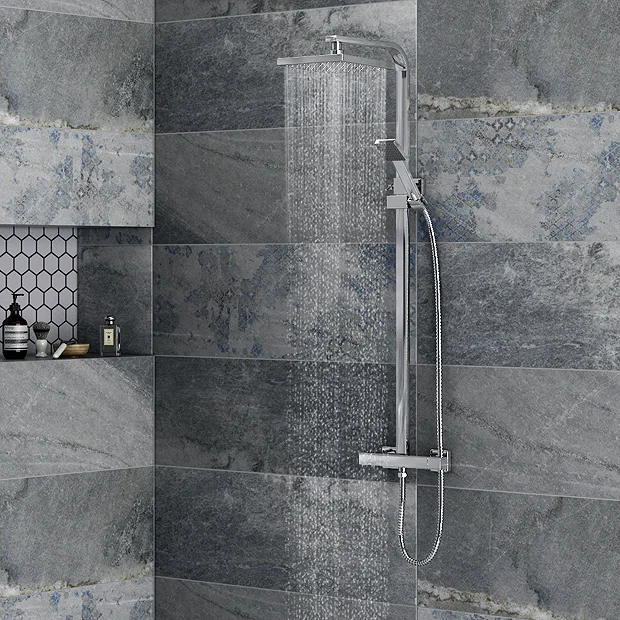 Upgrade your bathroom experience with this Prime Luxury Square Thermostatic Shower. This sleek set boasts an overhead rainfall shower head and a fully adjustable paddle handset on a flexible hose, so you can choose your preferred spray and control. The thermostatic mixer shower features an elegant bar valve, incorporating the latest ceramic disc technology for optimum temperature control. A square slide rail kit not only looks good, it also ensures easy adjustment of the two heads for the perfect tailored experience. Manufactured from brass with a chrome finish, this set will complement and elevate your modern space.